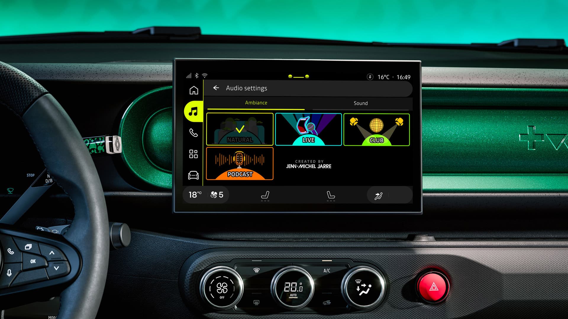 Twingo-ånden kommer til live også på skjermene: eksklusive animasjoner i glade farger gjør all informasjon tydelig og morsom, for en unik opplevelse som er 100 % Twingo.